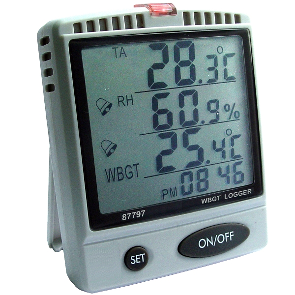 87797 AZ Wet Bulb Globe Temperature Recorder memiliki LCD besar untuk menunjukkan nilai dan jam waktu nyata. Ini bisa menjadi Monitor WBGT dalam ruangan terbaik Anda. Ini dapat diterapkan untuk mengukur nilai WBGT dalam konstruksi, pengecoran besi dan baja, pabrik pembakaran batu bata, fasilitas kaca, ruang ketel, lokasi penambangan, pelatihan tentara, maraton, aktivitas pantai, dan sebagainya. Itu juga dapat digunakan oleh ahli kesehatan industri untuk menentukan tingkat paparan yang tepat terhadap suhu tinggi.
