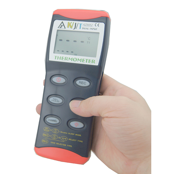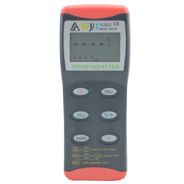 Az Instrument 8851 adalah jenis termometer genggam yang mampu mengukur suhu menggunakan berbagai jenis termokopel, termasuk K, J, dan T. Termokopel ini umumnya digunakan dalam pengaturan industri untuk pengukuran suhu dalam proses seperti manufaktur, pemrosesan makanan, dan HVAC. .