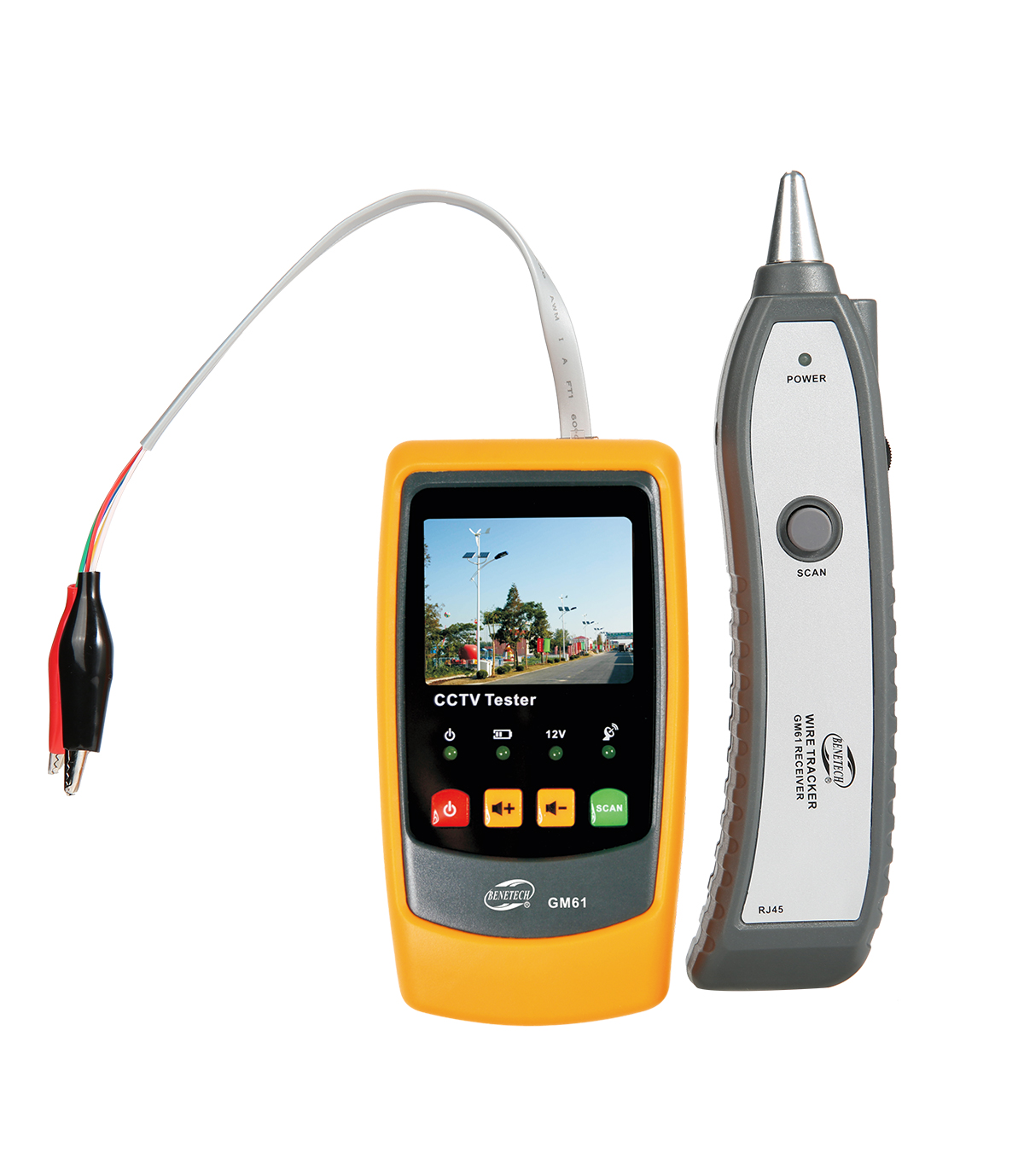 Benetech GM61 CCTV Tester adalah alat uji portabel yang digunakan untuk memeriksa dan menganalisis sistem kamera CCTV serta kabel sinyal video. Alat ini dilengkapi layar TFT LCD 2 inci untuk menampilkan gambar video dari kamera secara langsung sehingga memudahkan teknisi dalam instalasi, pengaturan posisi kamera, dan pemeliharaan sistem CCTV. Selain itu, perangkat ini juga dapat melacak kabel (wire tracing), mendeteksi sinyal video, serta memeriksa kondisi kabel jaringan, sehingga membantu memastikan sistem pengawasan bekerja dengan baik