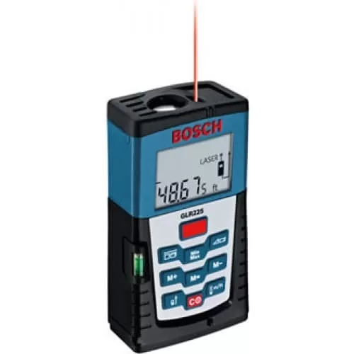 Pengukur jarak laser GLR225 Bosch menggabungkan desain yang mudah digunakan dengan akurasi luar biasa pada rentang lebar yang menggunakan empat sistem pengukuran: inci, kaki dan inci, kaki desimal, dan metrik. Di luar berbagai tugas pengukuran, alat ini dapat menghitung jarak, luas, atau volume dengan cepat dan presisi yang menjadikannya ideal bagi teknisi listrik, kontraktor, tukang kayu, tukang batu, dan tukang pipa untuk menghitung jarak, luas, volume, atau sudut dengan cepat dan presisi.