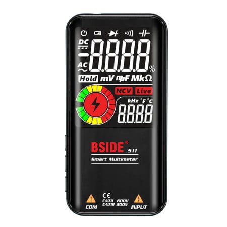 Multimeter Cerdas BSIDE S11 adalah multimeter digital yang diproduksi oleh BSIDE, sebuah perusahaan yang berspesialisasi dalam peralatan pengujian dan pengukuran elektronik. Multimeter digital banyak digunakan untuk pengukuran listrik dalam berbagai aplikasi, termasuk elektronik, teknik elektro, dan pemecahan masalah rumah tangga umum.