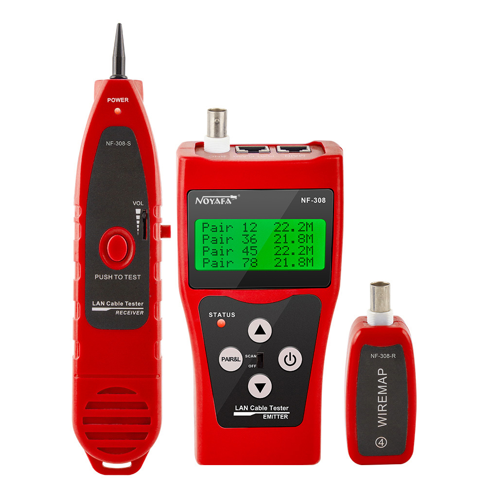 NF-308 merupakan kabel tester digital sekaligus wire tracker, dengan tampilan LCD. Bisa dipakai untuk test kabel UTP, telpon, BNC, merunut kabel, mengukur panjang kabel, mencari lokasi kabel yang putus di tengah
