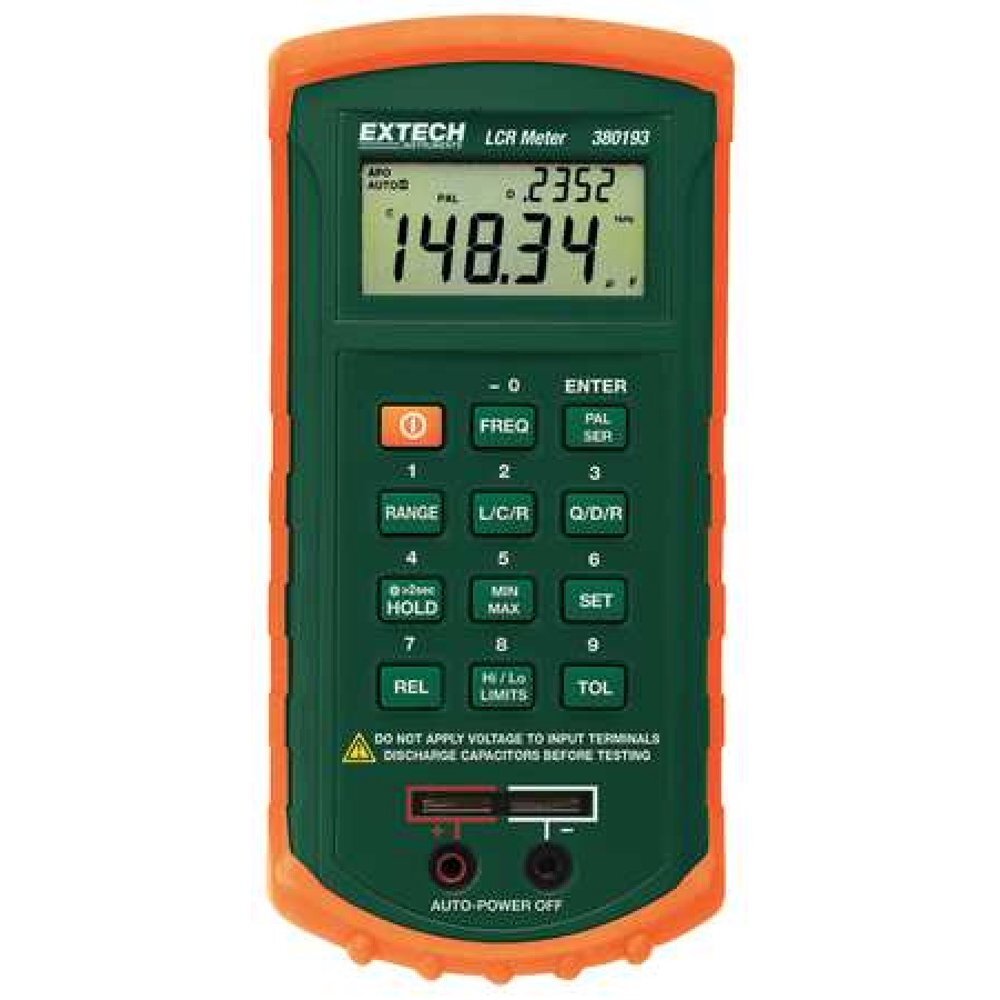 EXTECH 380193 adalah meteran LCR (Inductance, Capacitance, and Resistance) komponen pasif yang dirancang untuk mengukur sifat kelistrikan komponen elektronik pasif seperti kapasitor, induktor, dan resistor. Perangkat ini umumnya digunakan dalam manufaktur elektronik, penelitian dan pengembangan, dan industri jasa yang mengutamakan karakterisasi komponen yang akurat.