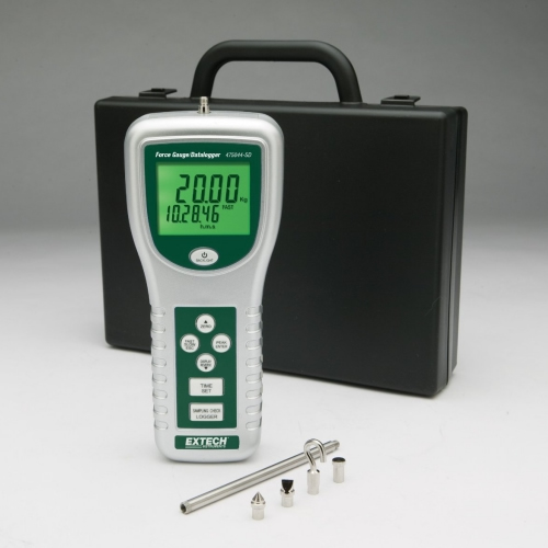 475044-SD Digital Force Gauge/Datalogger tanggal, stempel waktu, dan menyimpan pembacaan push/pull hingga 2M pada kartu SD dalam format Excel untuk kemudahan transfer ke PC. Menampilkan layar LCD 5 digit dengan pegangan puncak.