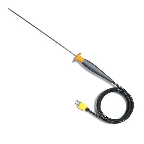 Fluke 80PK-22 SureGrip™ Immersion Temperature Probe dirancang untuk digunakan dalam cairan dan gel, digunakan dengan instrumen pengukur suhu apa pun yang dirancang untuk menerima termokopel tipe K dan memiliki input konektor mini.