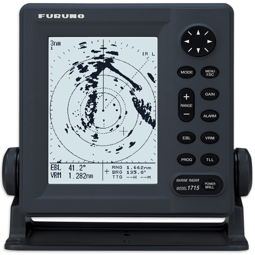 FURUNO 1715 Radar Marine GPS adalah radar LCD kontras tinggi yang dirancang untuk kapal pesiar dan perahu nelayan kecil. Gema radar disajikan dalam empat warna abu-abu pada LCD 7″ Silver Bright. Radar menawarkan gambar rinci garis pantai dan target pada jarak dekat berkat panjang pulsa yang lebih sempit dan bandwidth IF ganda. Kecepatan rotasi antena secara otomatis berubah tergantung pada pemilihan jangkauan untuk deteksi target yang optimal. Layar kedap air yang ringkas memungkinkan pemasangan di atas meja atau panel di kokpit atau di jembatan terbang terbuka.