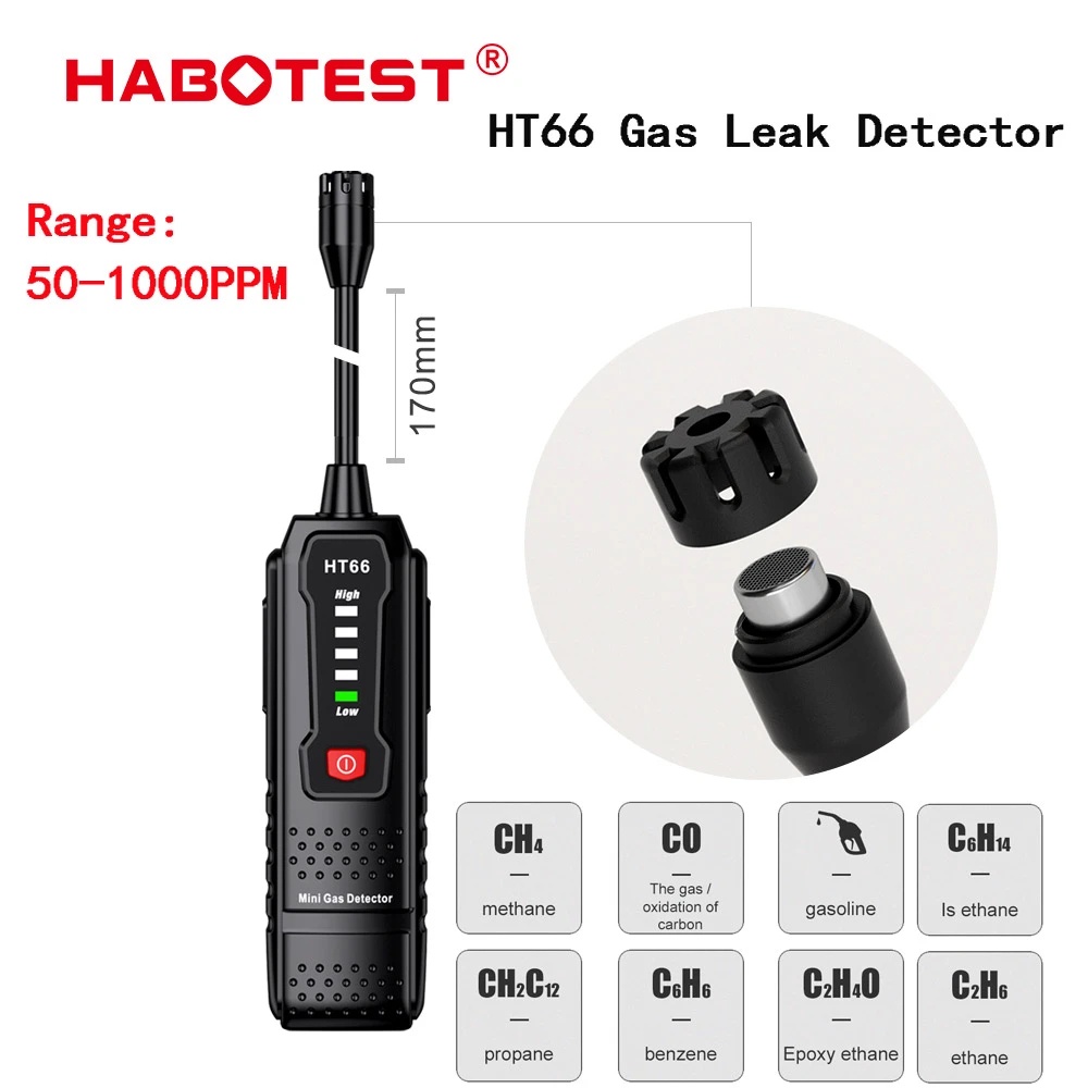 Gas Detektor HABOTEST HT66 adalah perangkat portabel yang digunakan untuk mendeteksi konsentrasi gas tertentu di udara. Ini sangat berguna dalam berbagai aplikasi, termasuk industri, laboratorium, dan area dengan risiko kebocoran gas. Alat ini dirancang untuk memberikan peringatan dini tentang kehadiran gas berbahaya, sehingga memungkinkan tindakan pencegahan yang cepat untuk memastikan keselamatan.