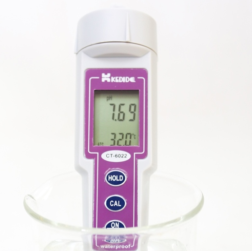 PH meter Kedida CT-6022 ini merupakan ph meter tertinggi dikelasnya. Stabil dan lebih cepat konvergen dengan keakurasian tinggi karena sudah menggunakan sirkuit microcomputer dan intelligent function. Satu satunya pH meter yang menampilkan suhu didalam air.