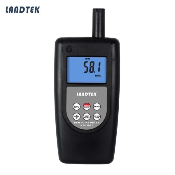 Landtek HT-1292D Dew Point Meter, Humidity Temp, Wet Bulb Temp Meter adalah perangkat portabel yang dirancang untuk mengukur beberapa parameter lingkungan, termasuk suhu, kelembapan, suhu bola basah, dan titik embun. Produk ini sering digunakan dalam berbagai aplikasi seperti pengujian kualitas udara, pemantauan kelembapan dalam proses industri, dan penelitian ilmiah.