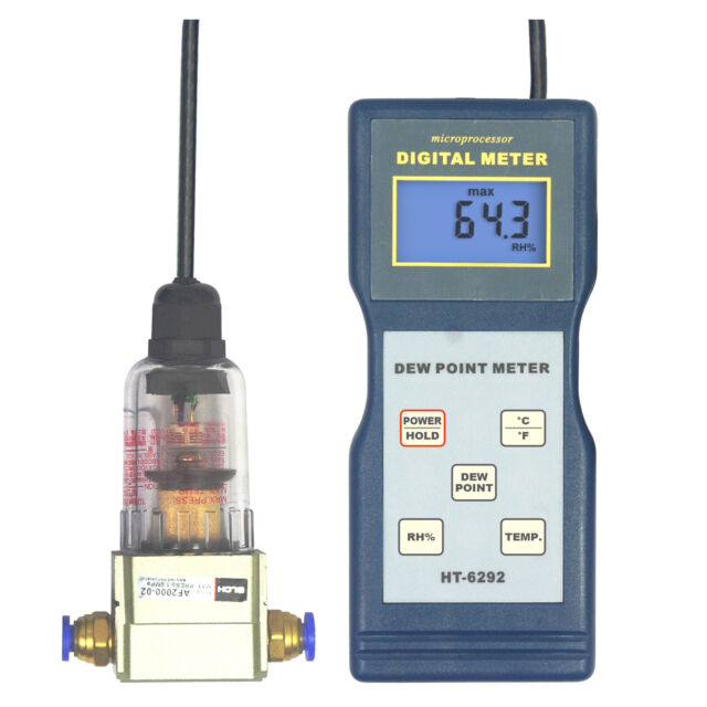 Pengukur Titik Embun HT6292 dari Landtek biasanya menampilkan tampilan digital yang menunjukkan suhu titik embun dalam derajat Celcius (°C) atau Fahrenheit (°F). Ini menggunakan sensor untuk mengukur suhu dan kelembaban, dan menghitung dan menampilkan nilai titik embun berdasarkan pengukuran tersebut.