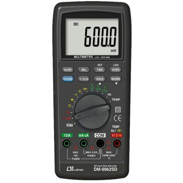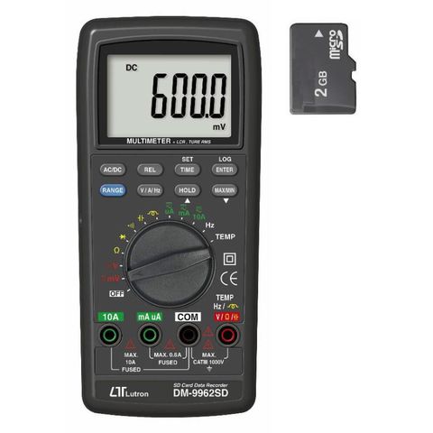 DM-9962SD Lutron adalah proposisi yang sangat menarik. Di permukaan, Lutron DM-9962SD tampak seperti multimeter digital True RMS yang kompeten. Di bawahnya terdapat multimeter digital 6000 hitungan ditambah tester komponen LCR. Ia juga memiliki antarmuka kartu microSD dan jam waktu nyata untuk pencatatan data waktu jangka panjang. Dengan kartu SD 16G, Anda dapat mencatat titik data yang diberi cap waktu setiap detik selama beberapa tahun, atau merekam banyak sesi pencatatan data.