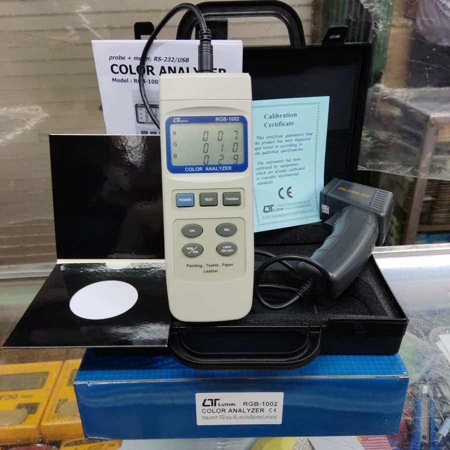 Lutron RGB-1002 merupakan alat yang digunakan untuk mengukur kualitas pada Warna. Colorimetri lebih dikenal dengan istilah Chroma Meter menggunakan sensor fotodioda, seperti halnya fungsi color matching retina mata manusia yang bisa mendeteksi tiga nilai warna primer. Dalam melakukan pengoperasian didukung beberapa tombol utama, seperti POWER (on/off),OP (tombol pengoperasian), CAL (untuk Kalibrasi), REL (Relatif), RGB/HLS(Menggunakan nilai RGB atau HLS).