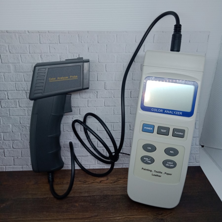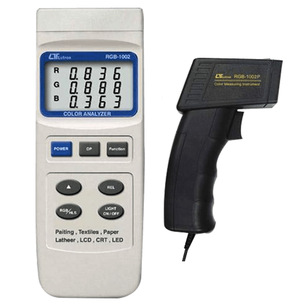 Alat Ukur Kualitas Warna Lutron RGB-1002 digunakan pada sampel bahan tekstil, kertas, kulit, bahan lukisan. Selain digunakan mengontrol kualitas sampel bahan tekstil, kertas, alat ini juga dapat mengukur nilai warna sampel pencahayaan pada monitor LCD, lampu LED, lampu penerangan, dll. Color Analyzer Lutron RGB-1002 sangat mudah dioperasikan.