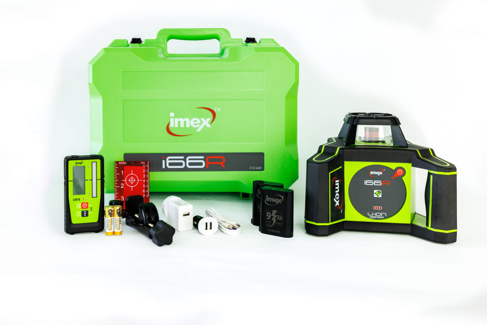 Red Beam Rotating laser Imex i66R. Pemimpin kelas dalam level laser berputar yang ekonomis, IMEX i66R menggabungkan casing dan teknologi yang kuat dari saudara-saudaranya yang lebih besar dalam paket yang efisien dan mudah digunakan. Dilengkapi dengan jangkauan diameter 400m yang besar, pelindung selubung karet, dan penutup mercusuar tugas berat untuk ketahanan guncangan dan cuaca yang unggul, i66R adalah pemimpin dalam hal nilai untuk leveling laser sehari-hari.