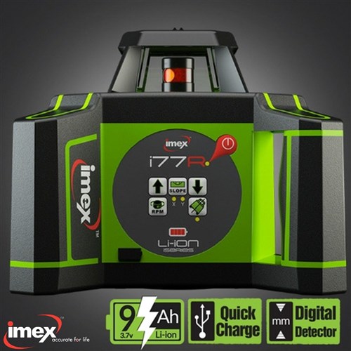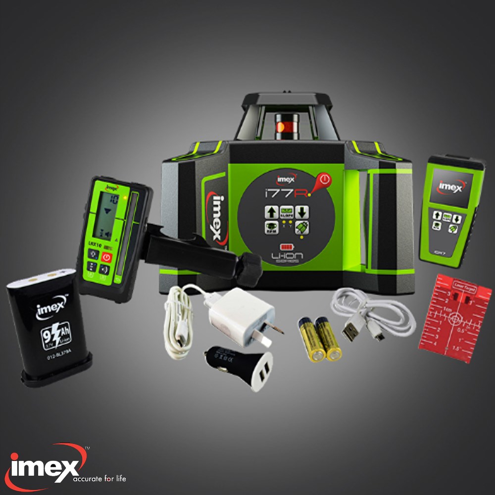 Red Beam Rotating Laser Imex i77R, rangkaian level laser putar iMEX telah ditentukan oleh tim konstruksi terlatih kami, dirancang oleh para profesional industri dan terbukti dalam semua kondisi untuk melakukan berbagai tugas leveling secara efisien dan akurat. Dengan self-leveling, fungsi kemiringan, mode pemindaian horizontal, pengendali jarak jauh, dan baterai lithium-ion yang dapat diisi ulang, rangkaian Imex memberikan nilai yang sangat baik dengan kemampuan serbaguna untuk berbagai fungsi konstruksi.