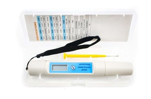 Untuk mengukur kadar garam di air, Ideal untuk industri minuman & makanan, budidaya ikan, akuarium, fotografi, lab, kontrol kualitas, kolam renang, riset