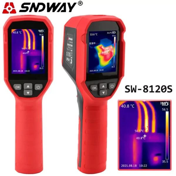 SNDWAY menghadirkan thermal imager yang handal untuk digunakan dalam berbagai kebutuhan industri seperti HVAC, maintenance, electrical, dll. Alat ini digunakan untuk melihat suhu suatu komponen secara jarak jauh maupun secara detil. Tersedia 2 varian yang dimana SW-256A memberikan hasil yang lebih detil dan akurat serta layar yang lebih baik, SW-8120S memberikan opsi dengan kemampuan yang mencukupi dan harga yang bersahabat.